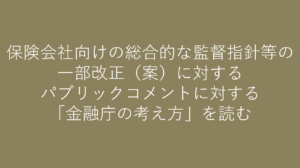 この、「そもそも、なぜ保険業法および監督指針が改正されることになったか」を整理したうえで、今回のパブリックコメントに対する金融庁の考え方を、ぜひ皆様一度読んでみてください。